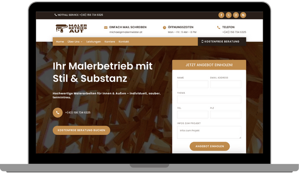Wir entwickeln eine professionelle Website, die Kunden überzeugt – klar, modern und förderfähig. Dabei achten wir besonders auf Vertrauen, regionale Präsenz und einfache Bedienung.